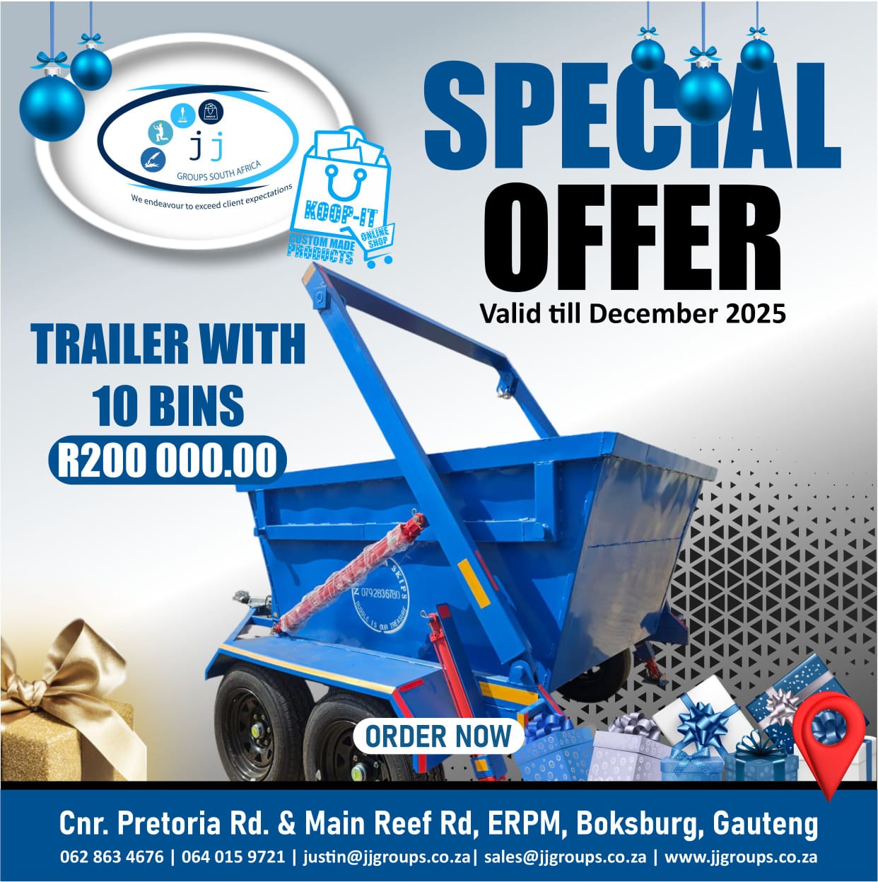 We offer a wide range of skip bins, including waste/rubbish skip bins and trailer skip bins, tailored to your specific requirements. Whether you need a standard size or a custom-built solution, our bins are designed for durability and convenience. Serving all of South Africa, our products ensure efficient waste management and garbage disposal for residential, commercial, and industrial purposes.